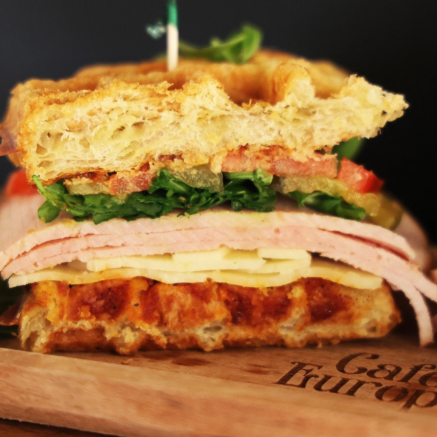 Croffle, smoked turkey, Provolone cheese, tomato, pickles, arugula, tomato our specialty sauce.