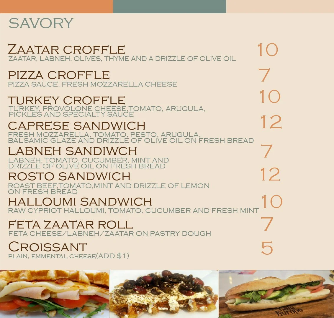 Your choice of Liège waffle or Croffle, smoked turkey, Swiss cheese, tomato, onions, pickles, arugula, our specialty sauce